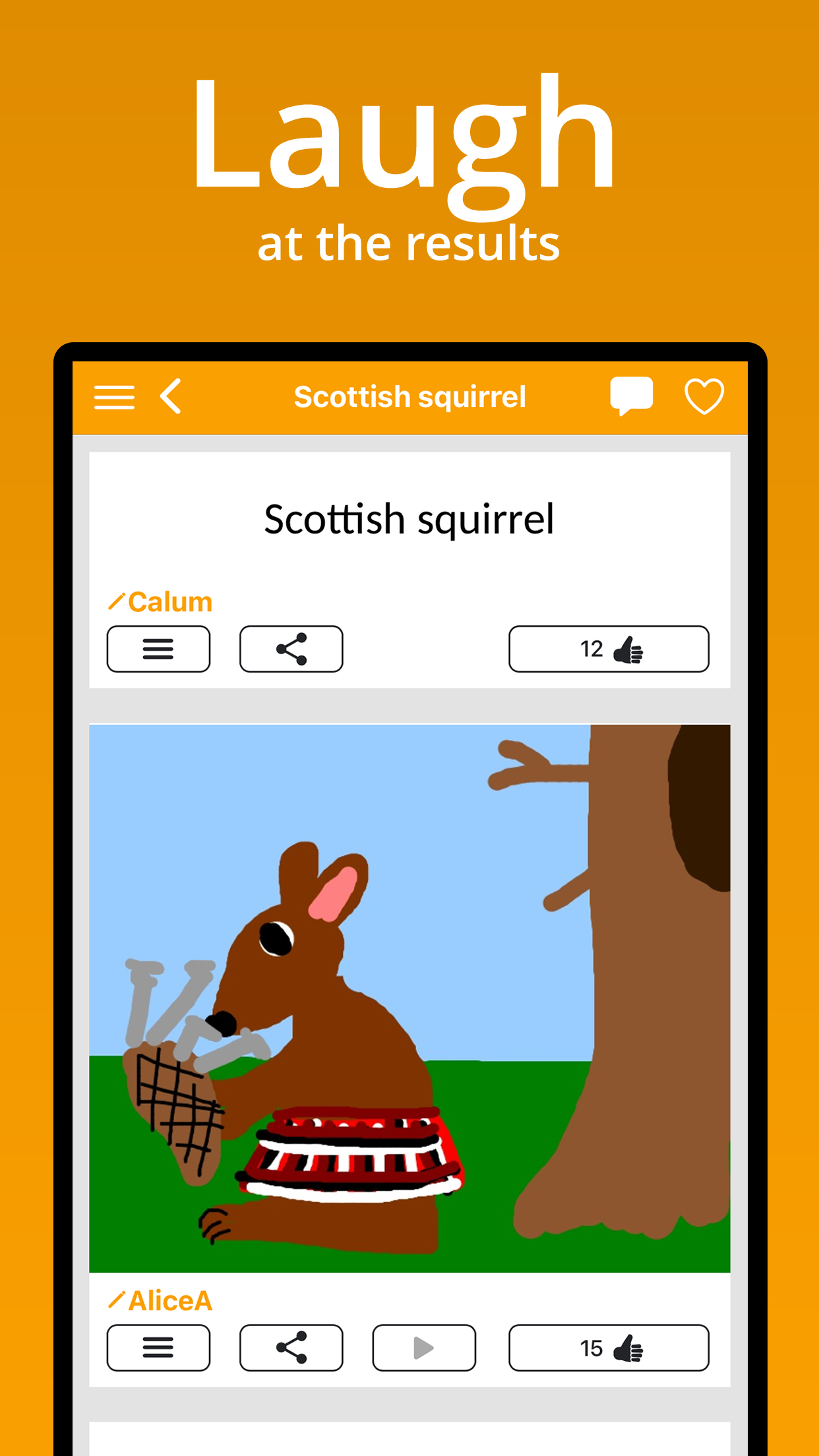 - View galleries of finished games and vote for your favourite drawings and descriptions